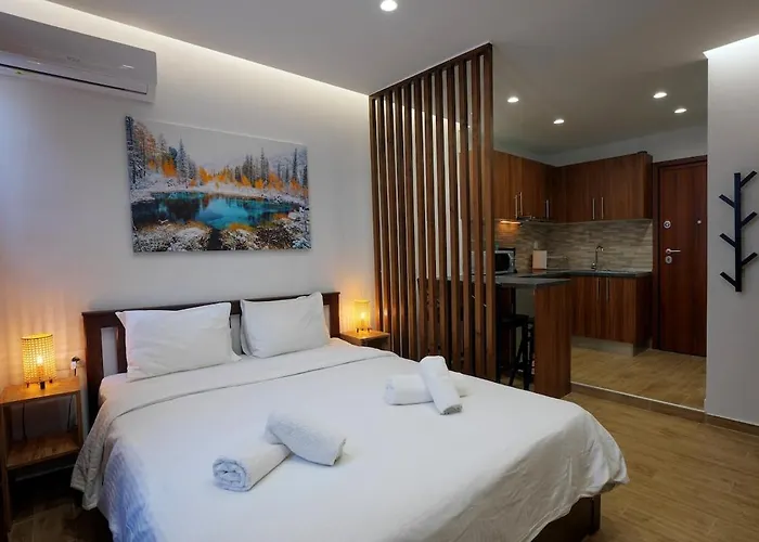 Denne ferielejlighed ligger kun 400 meter fra Ayios Panteleimon og ved siden af Statue of Eleftherios Venizelos. Det er 10 minutters kørsel til Toumba Stadion. Til drinks og mad er der Extravaganza og The Rouga i nærheden, ca. 350 meter derfra. Gæsterne kan nyde en tur til Alaca Imaret Camii som er i nærheden.